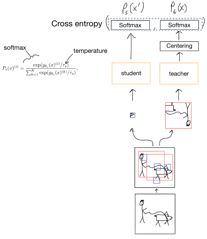 But before we get into iBOT, lets quickly recap the loss function from the original DINO paper.