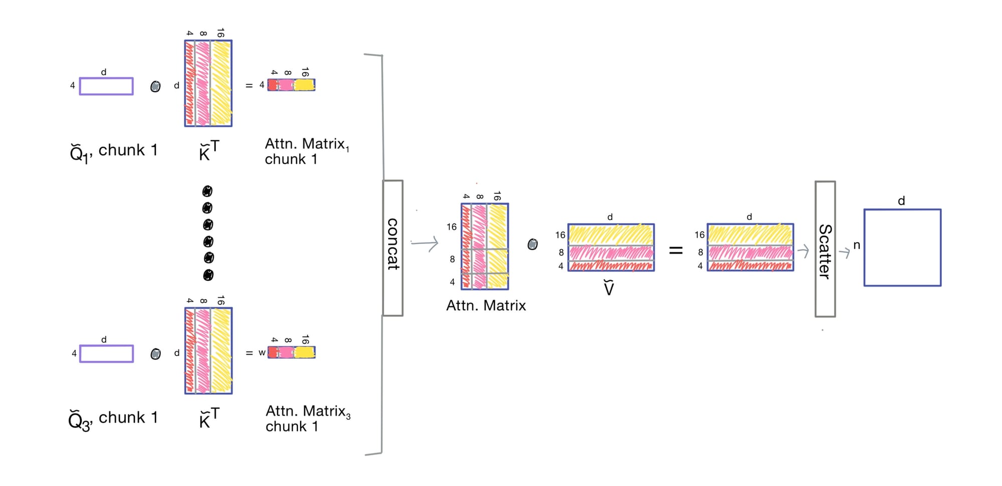 Qchunk is dotted with the gathered keys - The results are collated into a sparse attention matrix