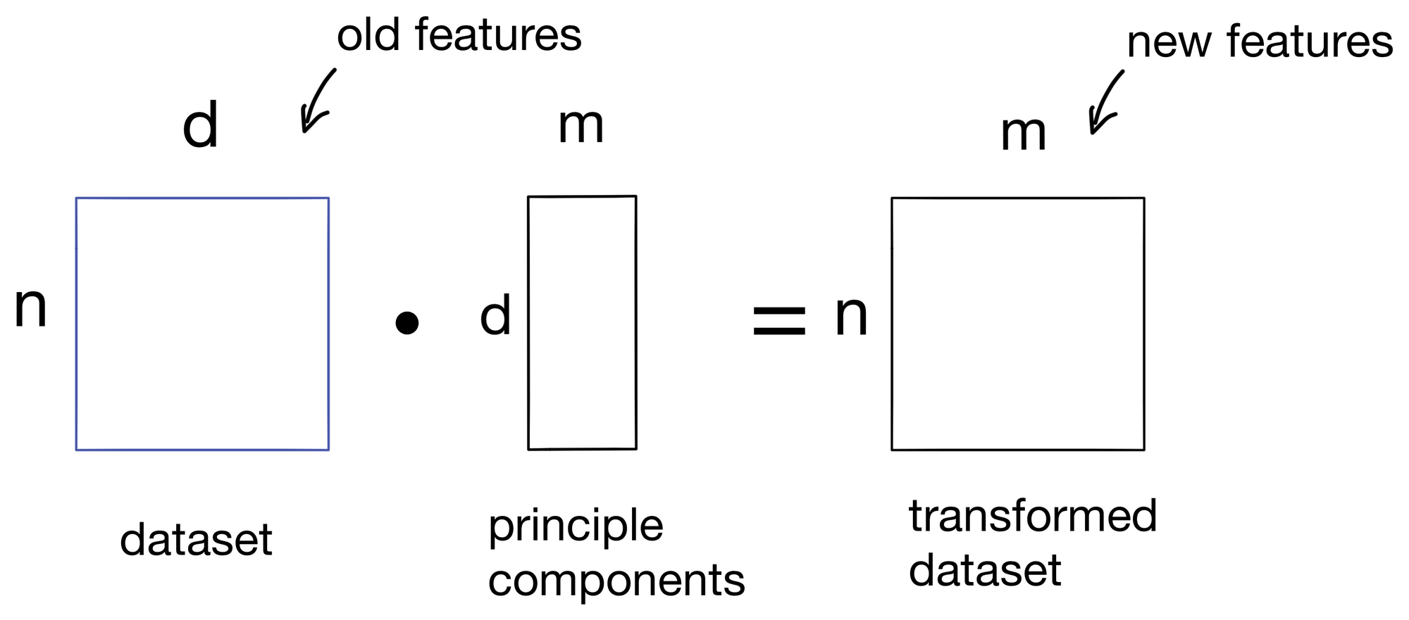 We start with a dataset A (of shape nxd) with n samples and d features.